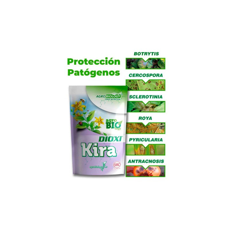 La dosis de DIOXI KIRA varía en función de la intensidad de la carencia de Zinc (Zn) de acuerdo a la dosis varía de 1 a 2 gr/litro y aplicación. Se recomienda aplicarlo al área que se desea proteger, utilizando siempre la suficiente cantidad de agua como vehículo para incorporar DIOXI KIRA. Además, su formulación le confiere una estabilidad de hasta 10 a 15 dí