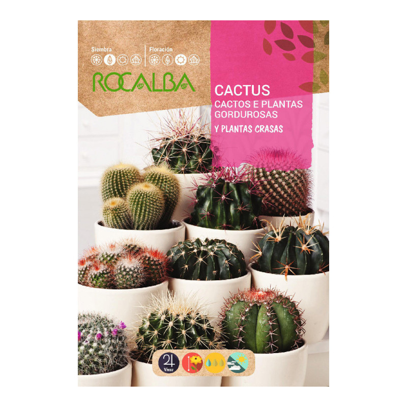 Dentro de las Cactáceas se encuentran las especies más diversas en tamaño, forma y color, originarias en su mayor parte de América y África. Aquí se han elegido especies de bellas formas y fácil desarrollo.