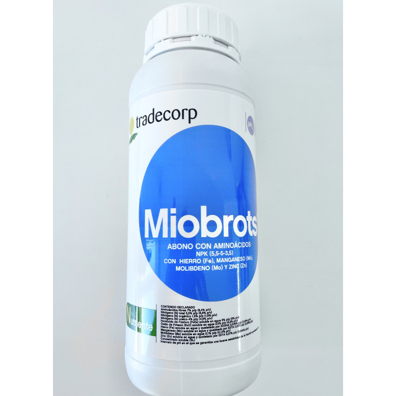 • MIOBROTs® es un enraizante y bioestimulante natural especialmente desarrollado y formulado con Aminoácidos libres y codificables, enriquecidos con NPK y microelementos esenciales quelatados de rápida asimilación, indicado para estimular y potenciar el desarrollo del sistema radicular, así como la actividad biológica y procesos fisiológicos de las plantas.