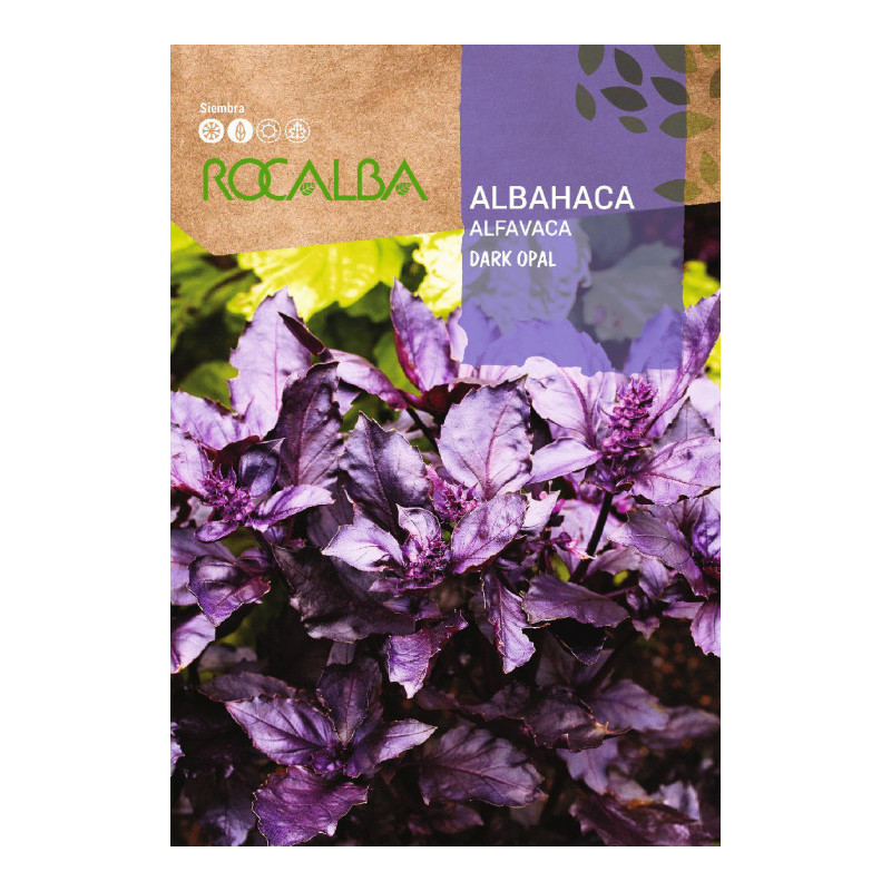 Variedad de follaje púrpura oscuro muy aromático. Planta anual, de 30 - 50 cm de altura, de hoja grande. Floración de color rosa intenso.