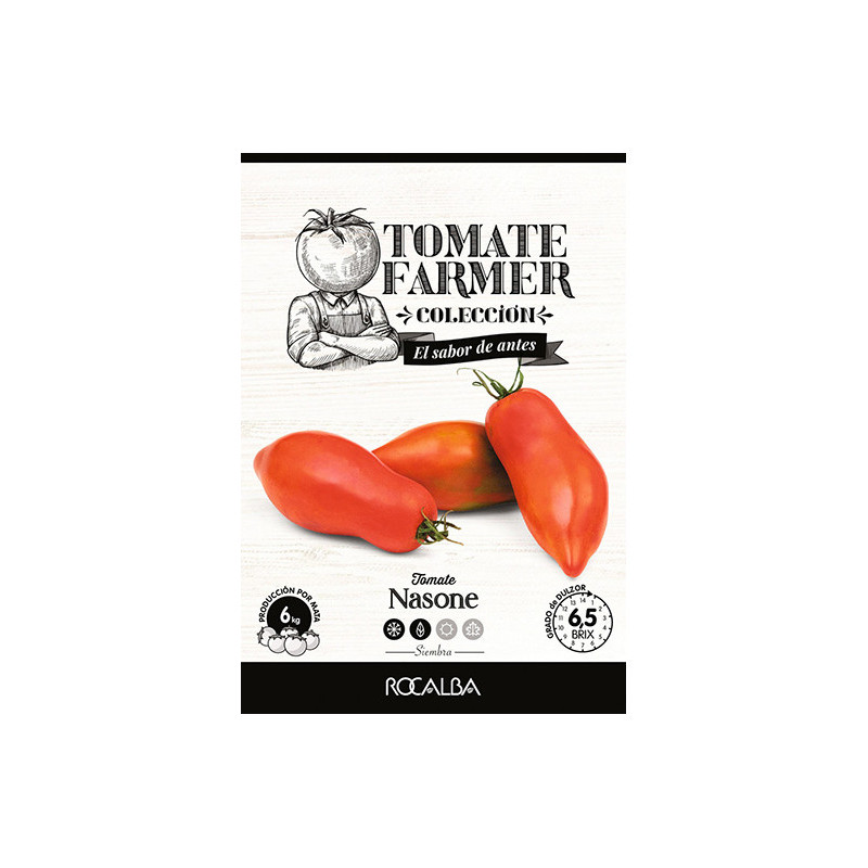 Variedad indeterminada. Frutos de 250 g. Para ensalada. sabor intenso y muy carnoso. Muy productivo, con cosechas de unos 6kg por planta