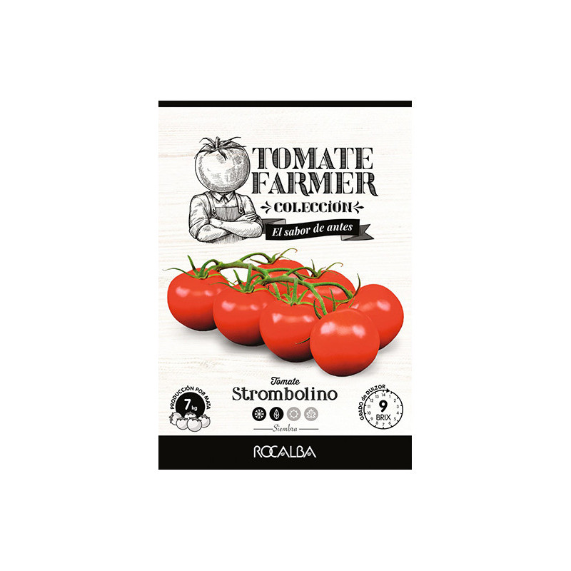 Variedad determinada de mata baja. Frutos de 20 g. Cherry redondo dulce y muy productivo. Cosechas de unos 7kg por planta.