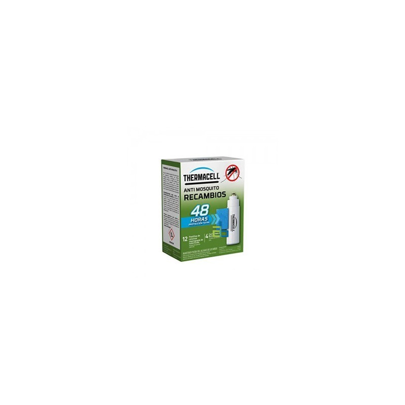 THERMACELL RECAMBIO 48H - 12 pastillas de celulosa impregnada de insecticida (4h de duración cada una) + 4 cartuchos butano de 12h.
